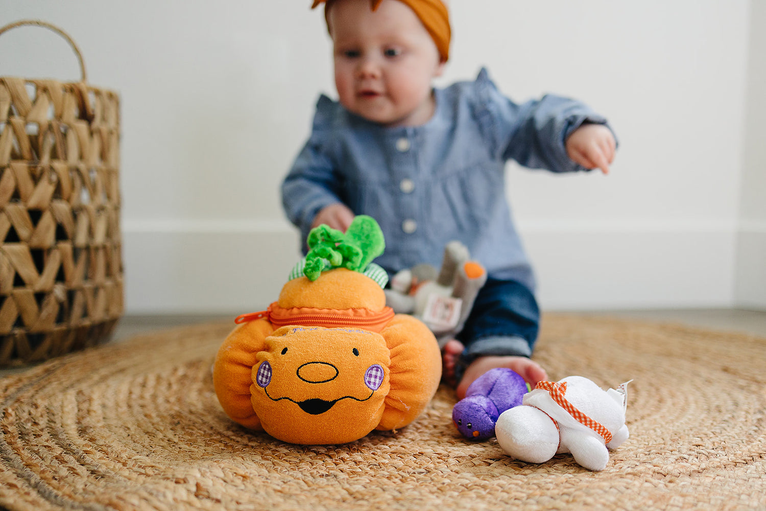 Celebrate this fall holiday with our Thanksgiving tote stuffed with four sensory toys including mini pumpkin pie and turkey stuffie.
