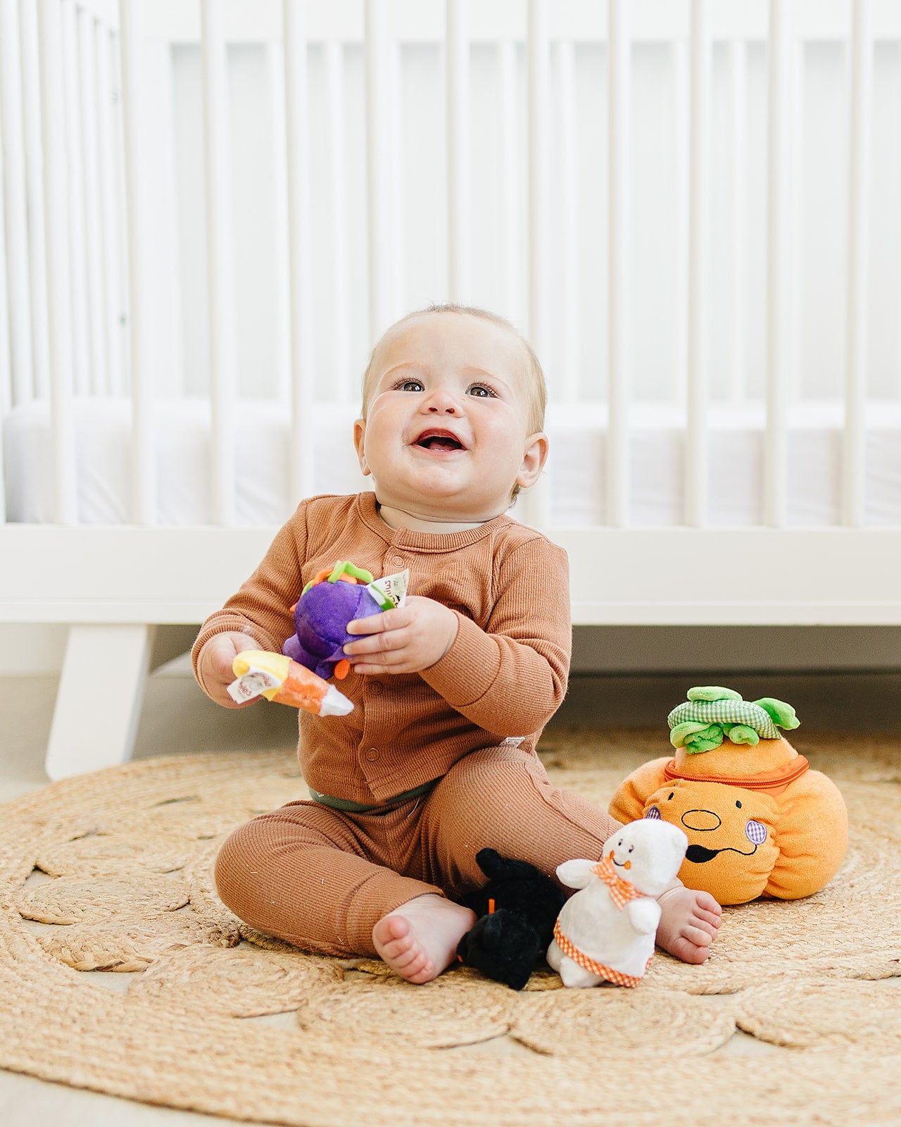 Celebrate this fall holiday with our Thanksgiving tote stuffed with four sensory toys including mini pumpkin pie and turkey stuffie.
