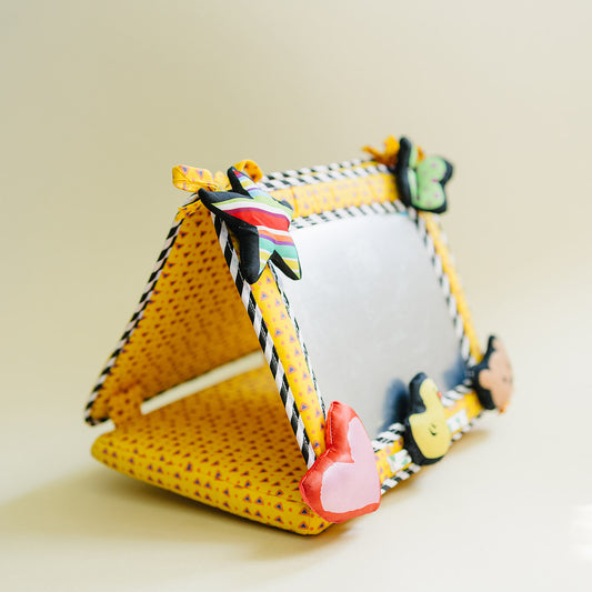 Keep baby stimulated and entertained with a baby-safe mirror in their crib, on the floor during tummy-time and in the car.
